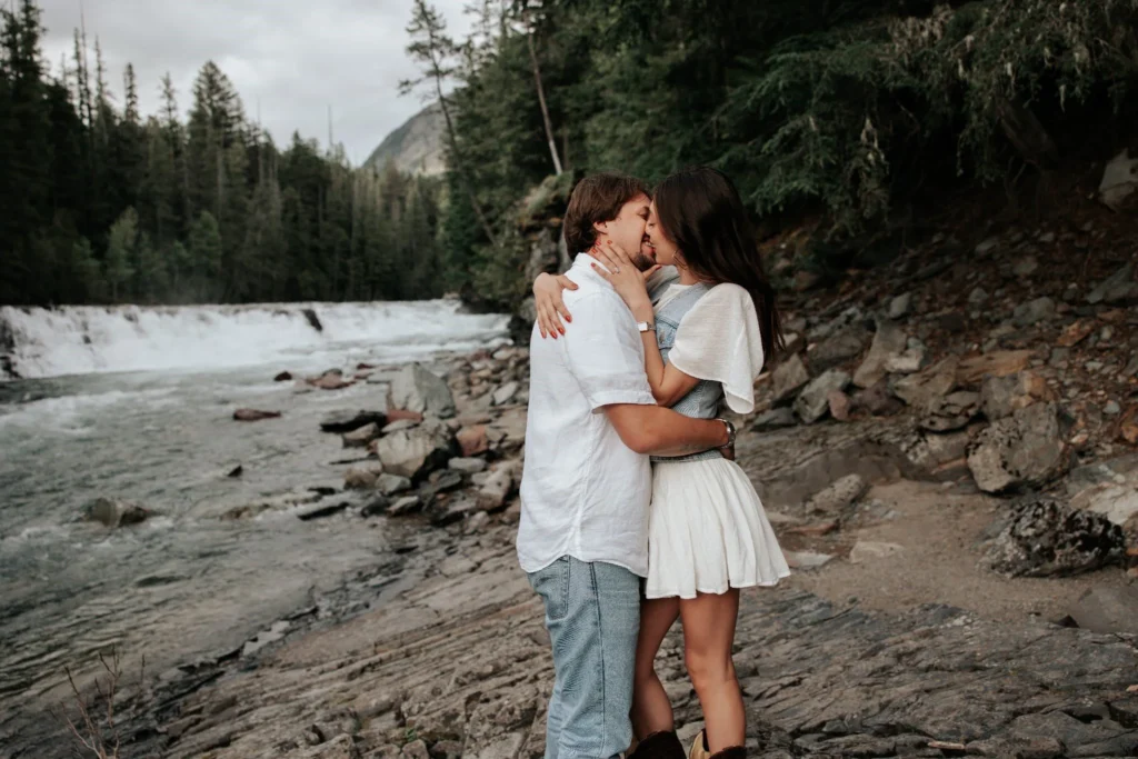 As the sun started to dip, we made our way to Belton Bridge—a Glacier favorite for its views of the river and distant peaks. The soft evening light hit just right as they shared a quiet moment overlooking the water, and I got to snap the sweetest images of their love, framed by the wild Montana landscape.