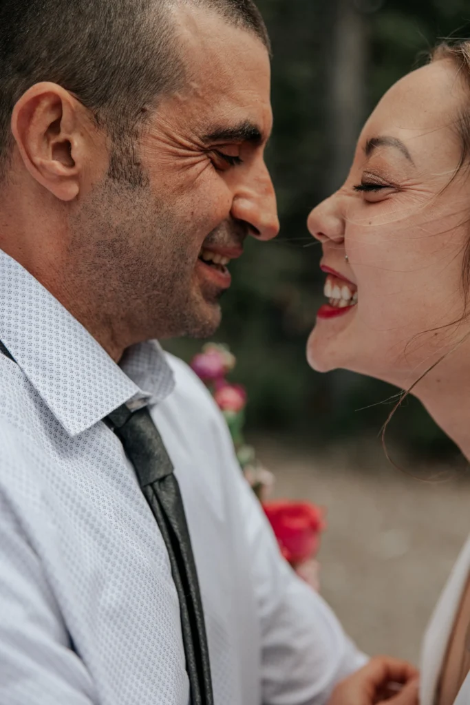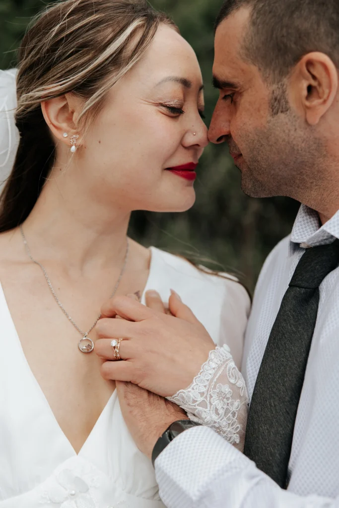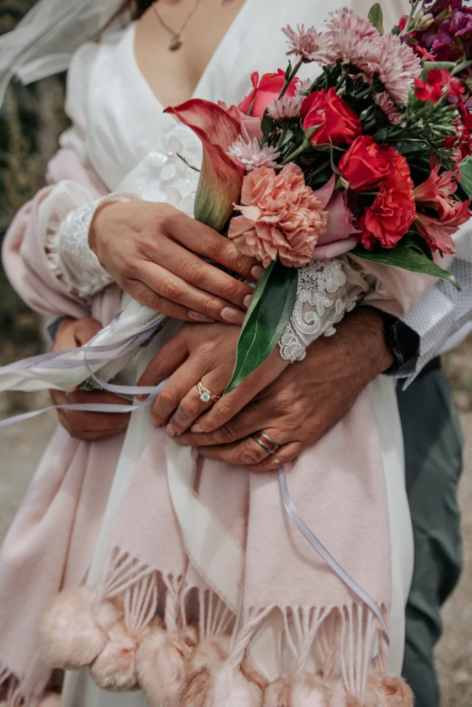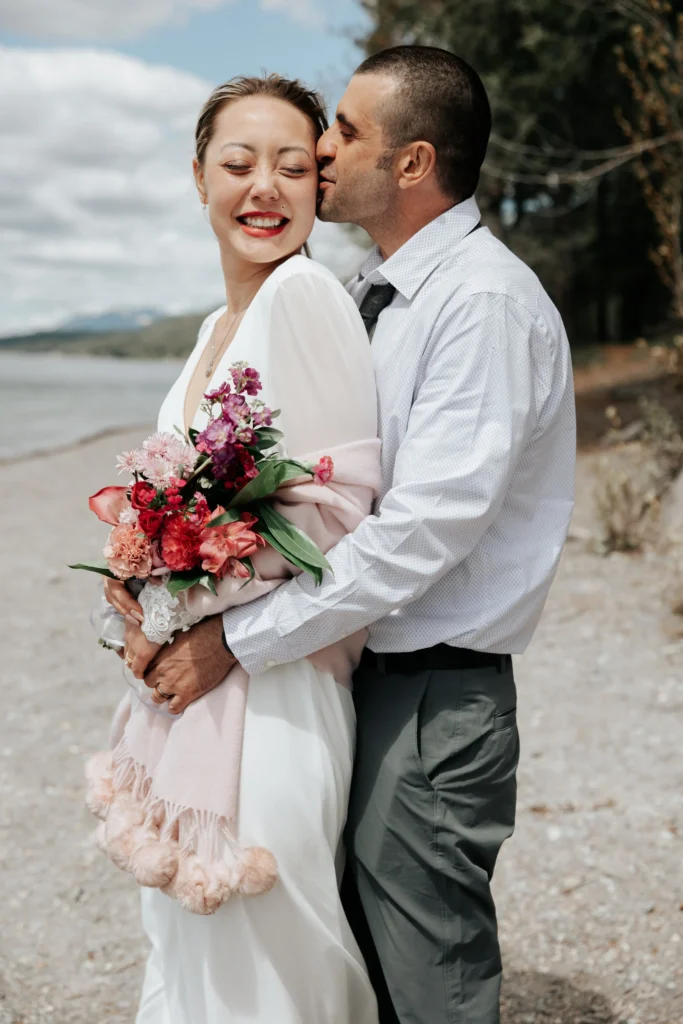 After the ceremony, we headed to the shores of Whitefish Lake, where the wind was soft and the light danced across the water. Wrapped in a cozy pink shawl and holding the most vibrant bouquet, the bride glowed with happiness. We spent the afternoon capturing portraits that felt effortlessly romantic—hugs that said “we made it,” kisses that couldn’t wait, and the calm joy that comes from knowing you’re home in each other.