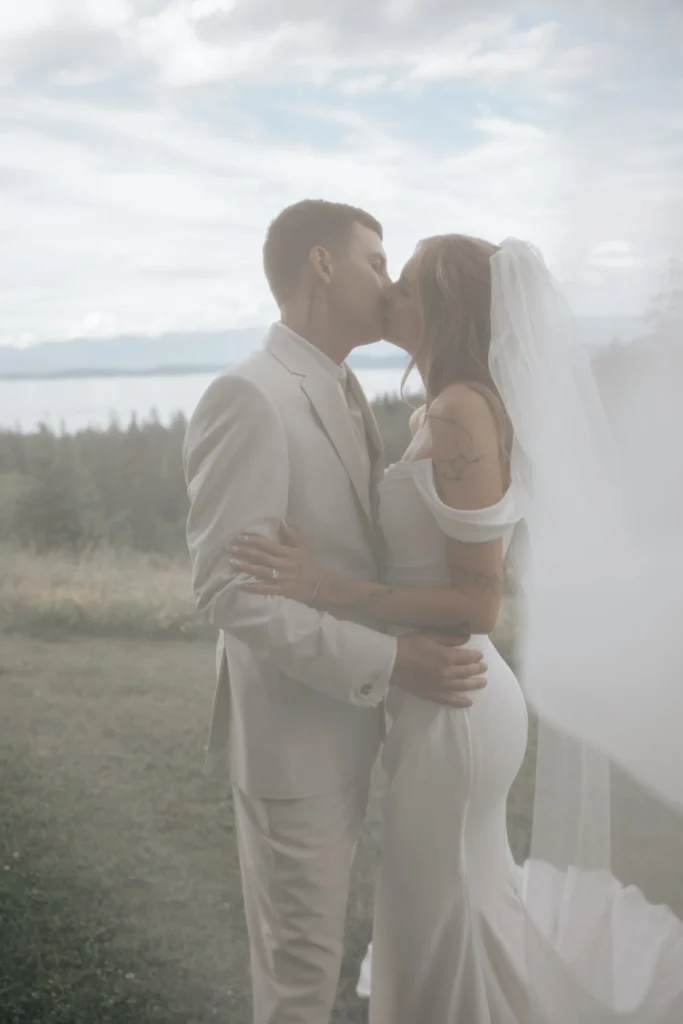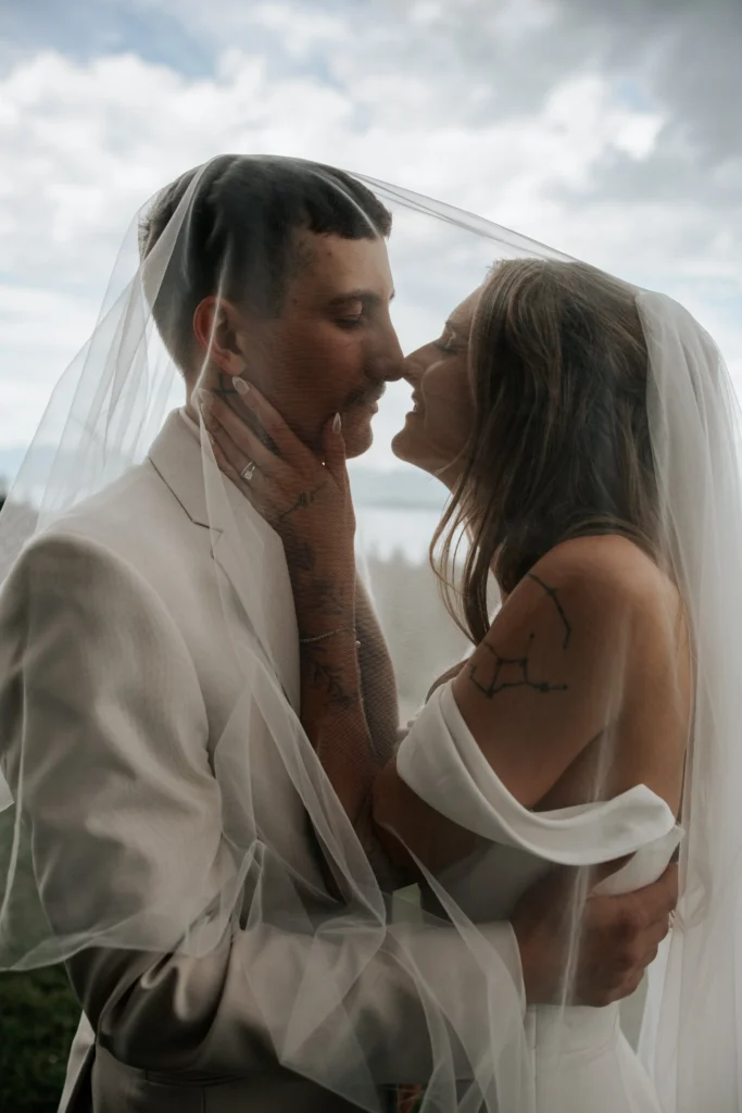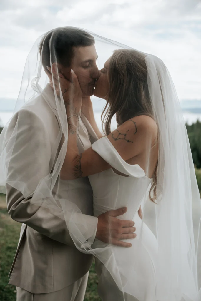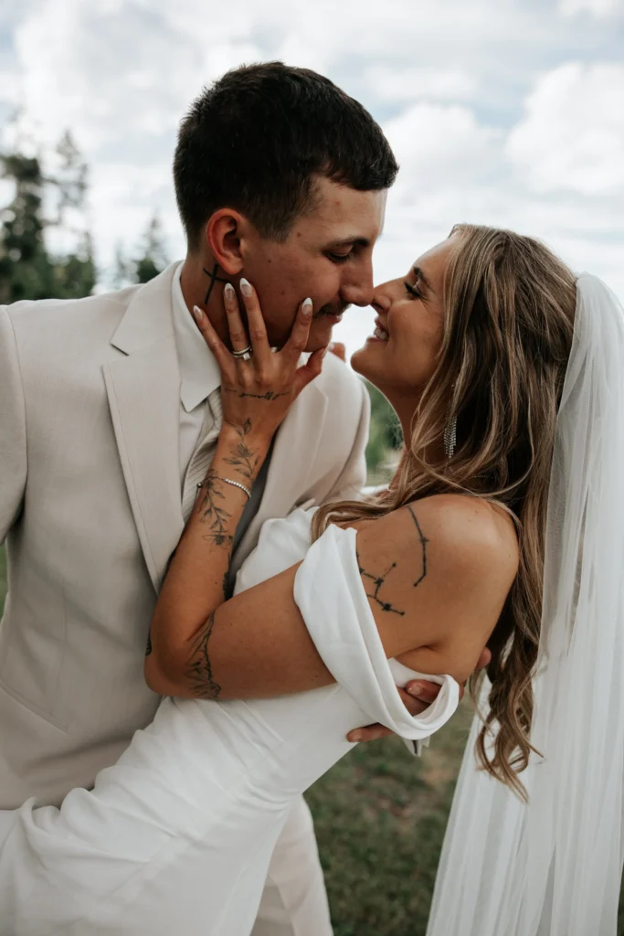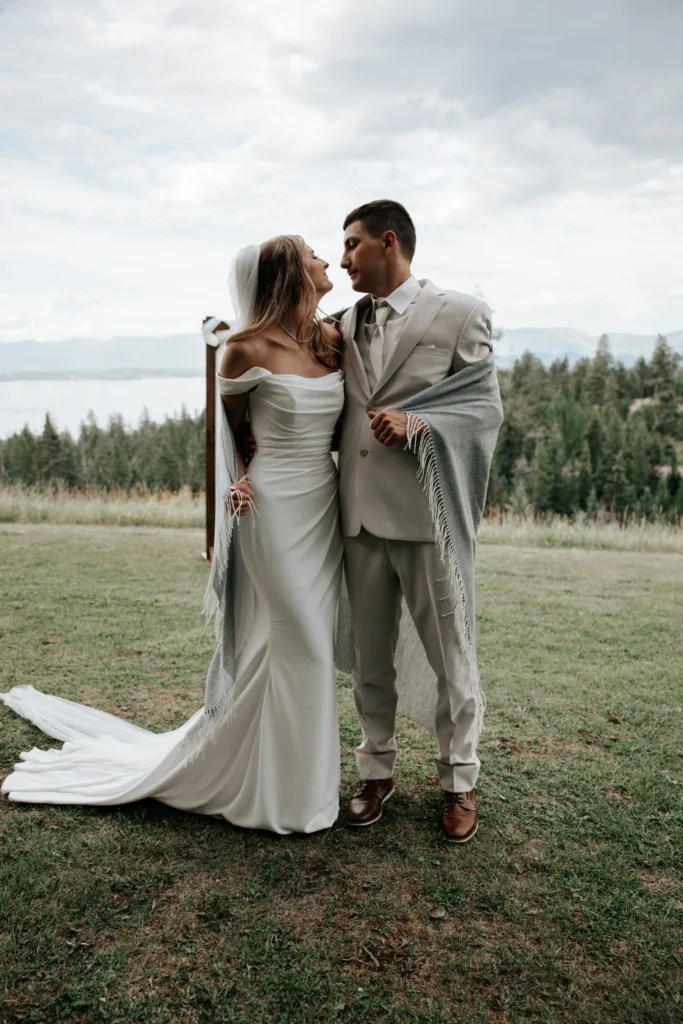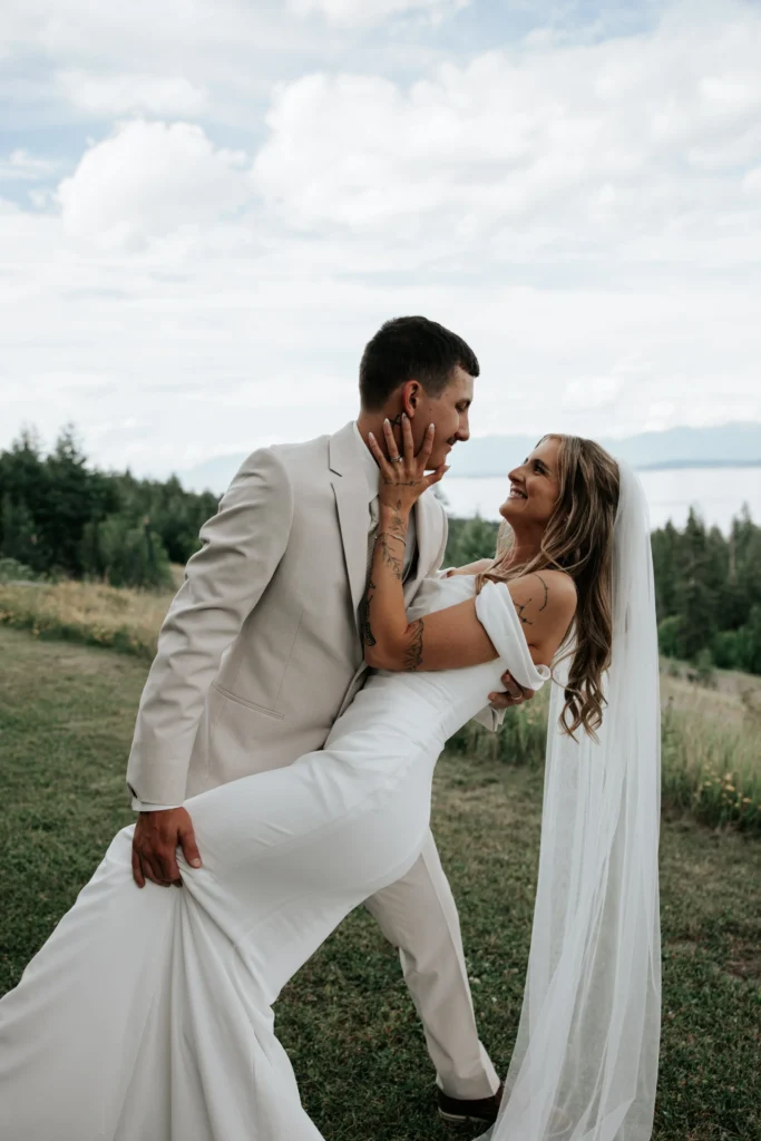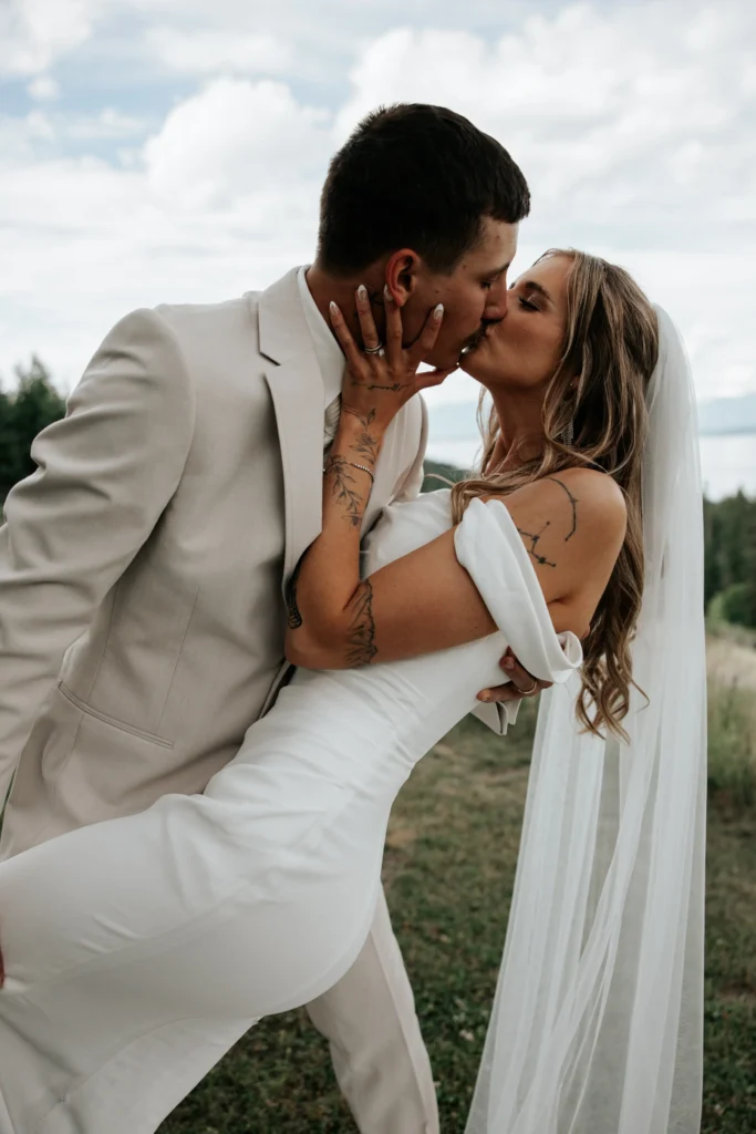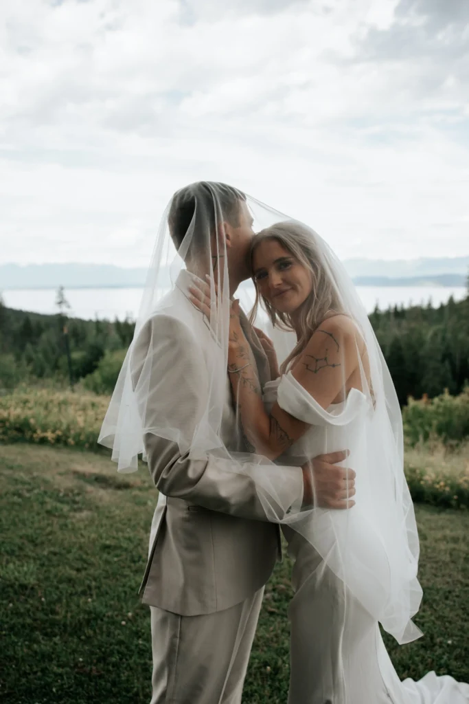 I also loved the personal details — the bride’s constellation tattoos peeking out from her dress straps, the intimate kiss under her veil, and the way they held onto each other with genuine joy. These are the moments that make Flathead Lake weddings so special: the backdrop is stunning, but it’s the people and their connections that bring the magic.